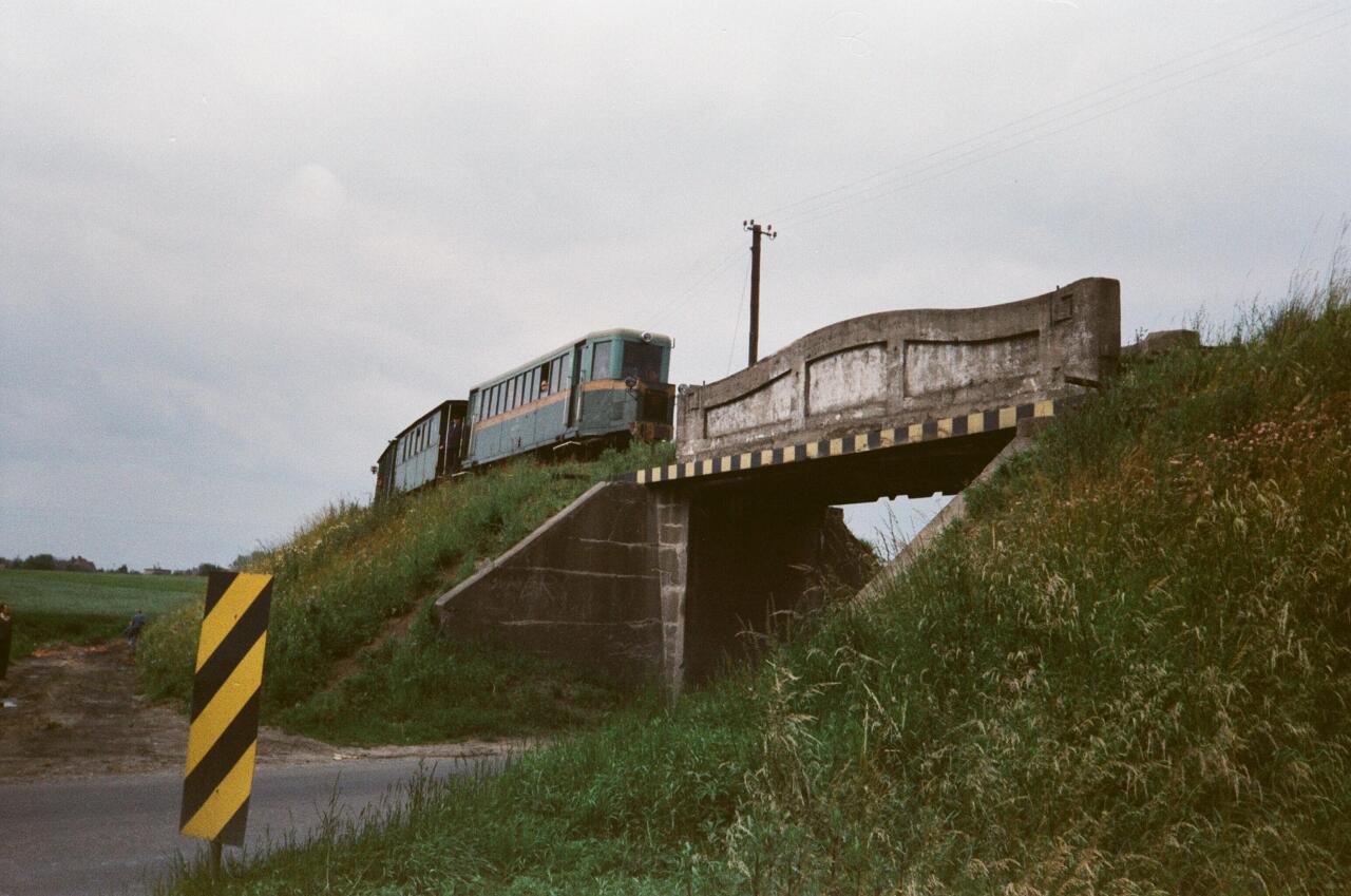 Dawnych wspomnień czar… Rok 1990. Mbxc1-41 podążający w kierunku dworca Witaszyce Wąskotorowe. Dziś byłoby to niemożliwe, gdyż widocznego na zdjęciu wiaduktu już nie ma…