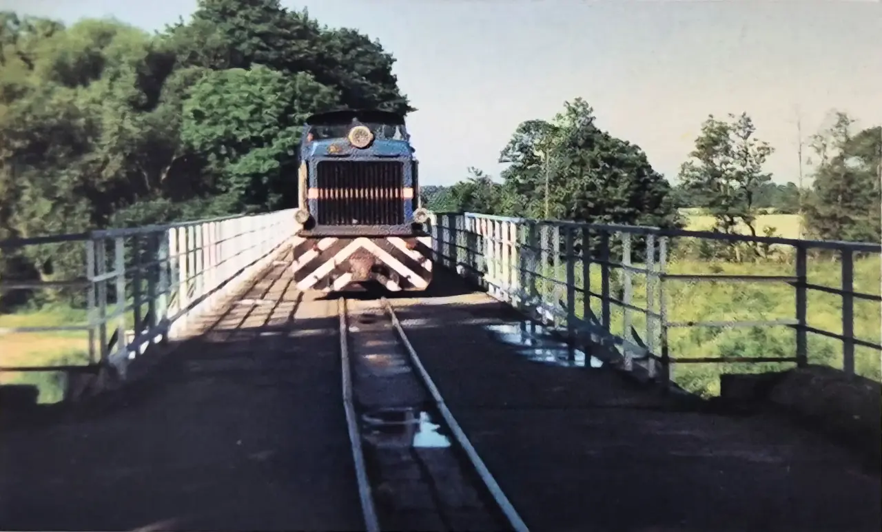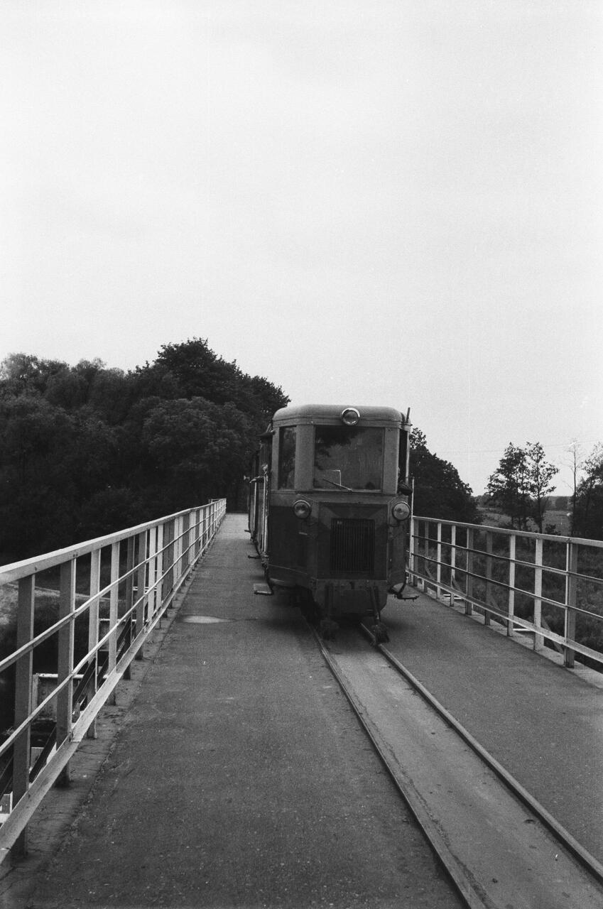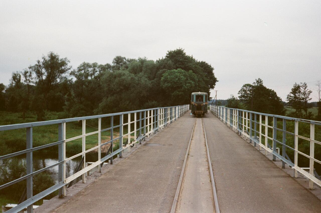 Ostatni planowy pociąg prowadzony Lyd2-069 na moście drogowo-kolejowym przez Prosnę. Ostatnie przęsło (o słabszej konstrukcji) było wysadzone przez Wojsko Polskie w 1939 r.