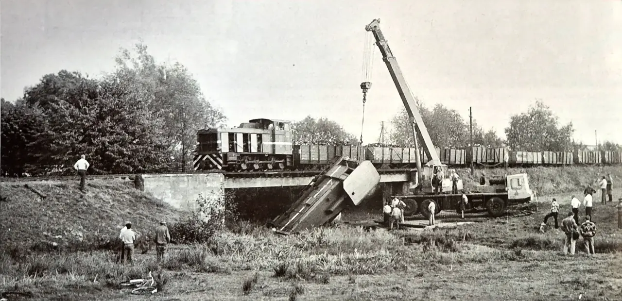 Próba podniesienia Lyd2-069, na moście przez Starą Prosnę. Pociąg planowy prowadzony Lyd2-60.