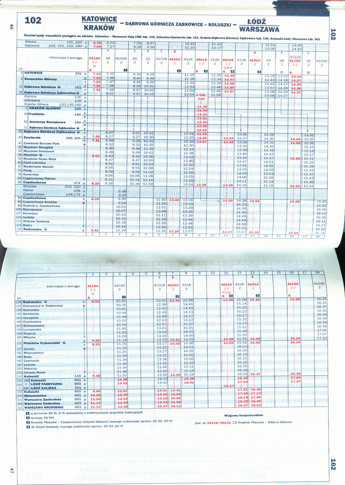 Warszawa/Łódź – Koluszki – Dąbrowa Górnicza Ząbkowice – Kraków Gł./Katowice