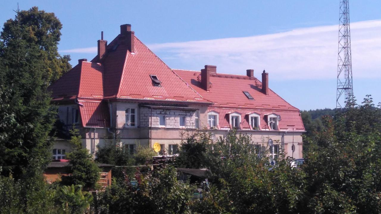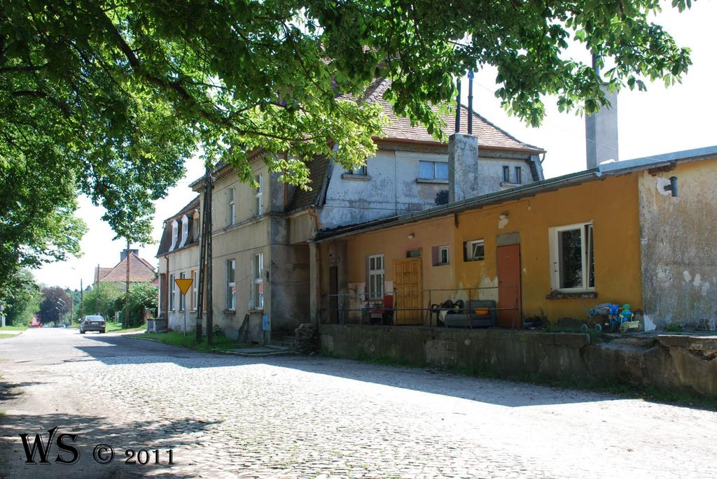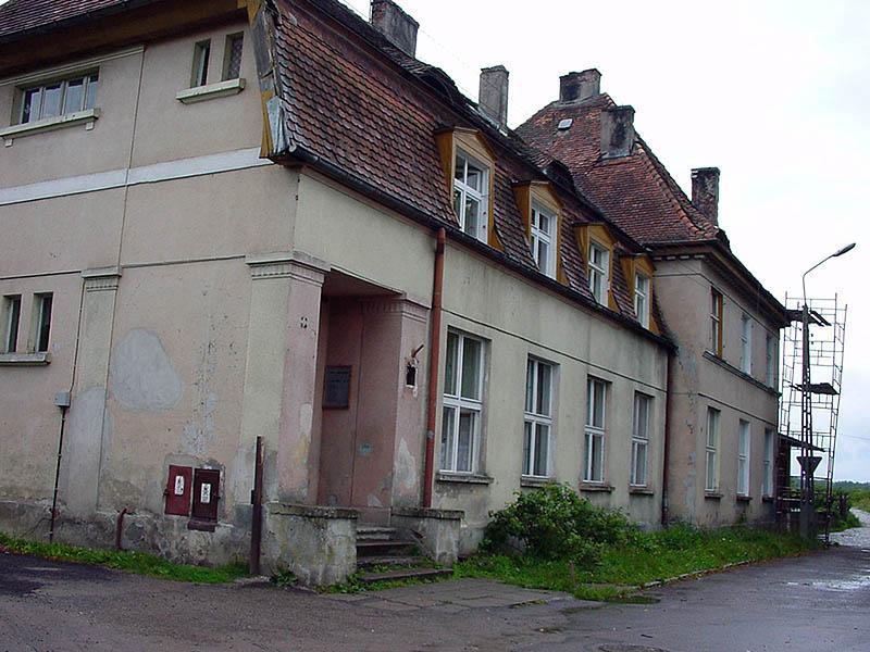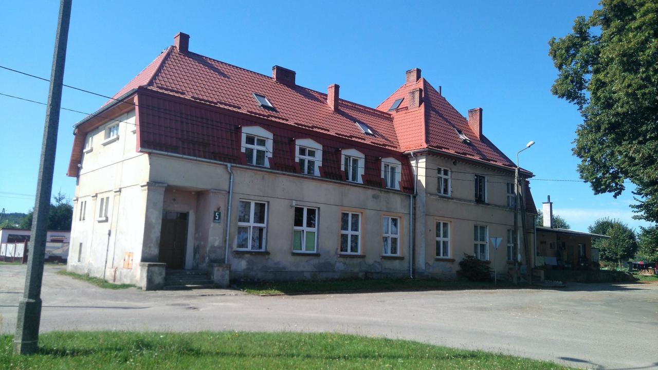 Polanów. Widok dawnego budynku dworcowego od strony peronów.