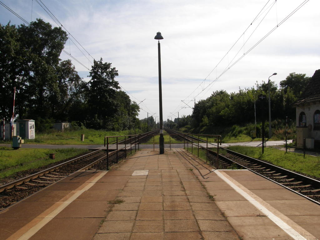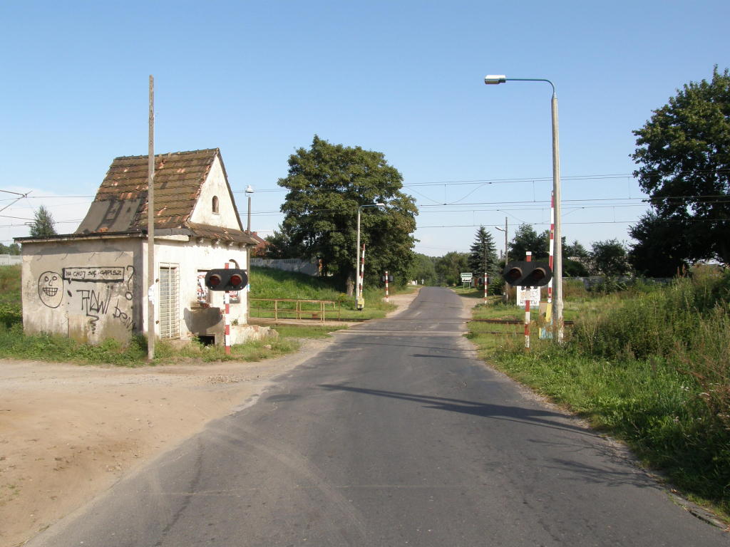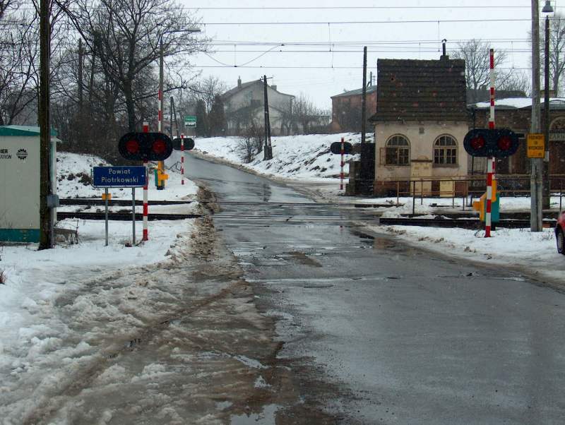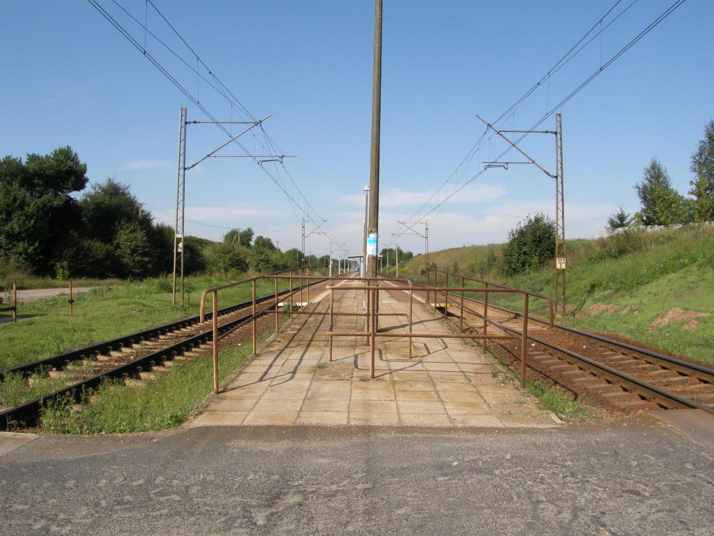Peron. Przejazd drogowy w Czarnocinie. Widok w kierunku Piotrkowa Trybunalskiego. 123,5 km.