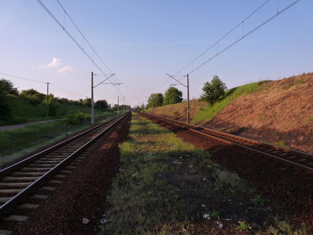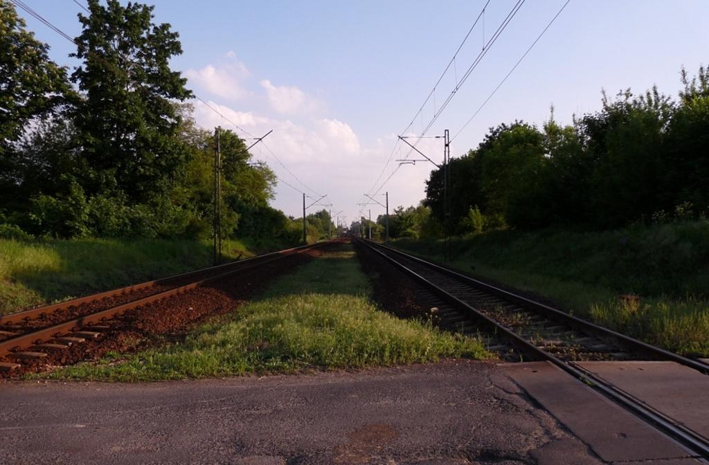 Widok z przejazdu kolejowego w stronę stacji Piotrkowa/Katowic.