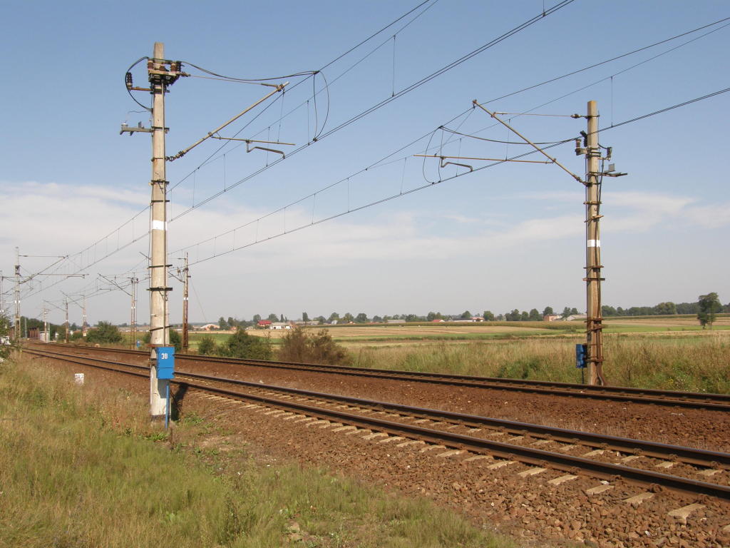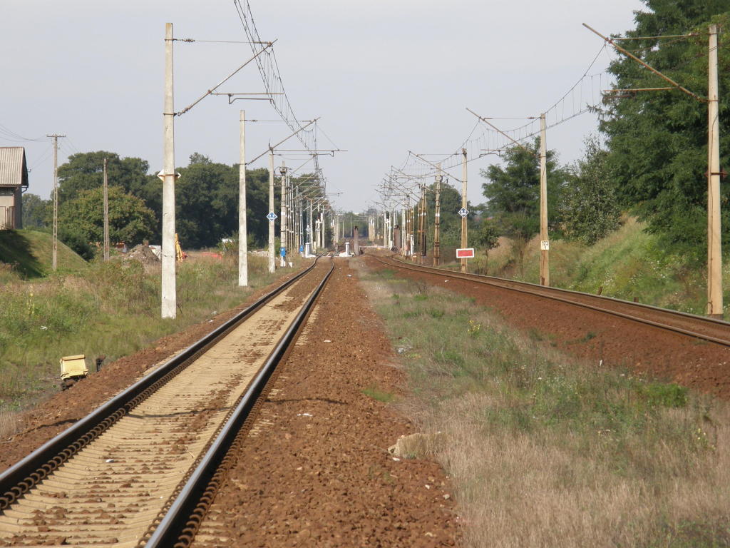Podstacja trakcyjna Czarnocin. Widok w kierunku Koluszek. 122,9 km.
