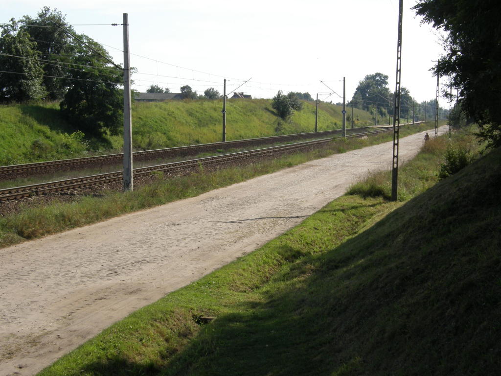 W oddali peron. Równia stacyjna, na której znajdowały się tory boczne. Widok w kierunku Piotrkowa Trybunalskiego. 123,1 km.