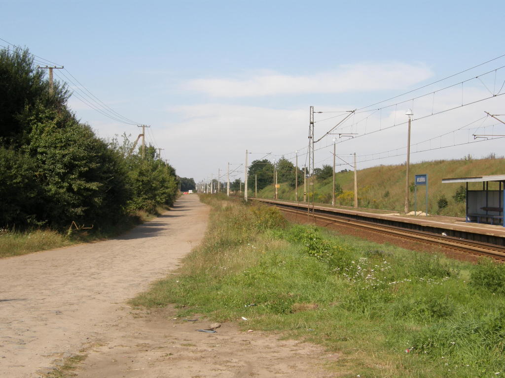 Widok w stronę Piotrkowa/Katowic z drogi dojazdowej do przystanku.