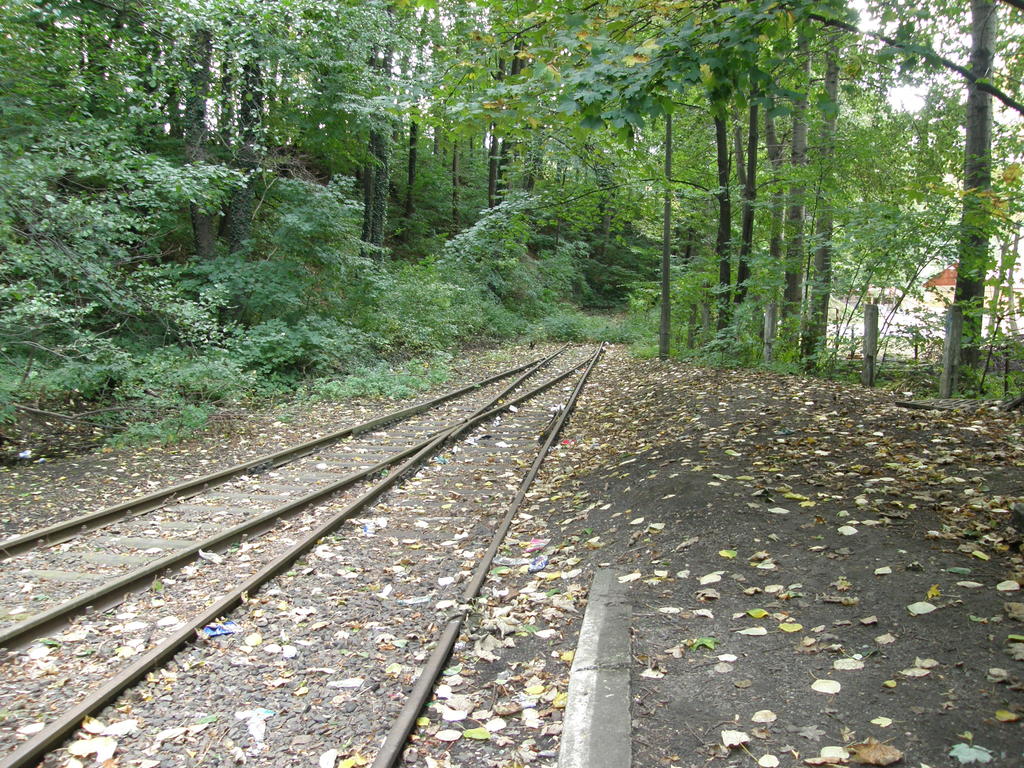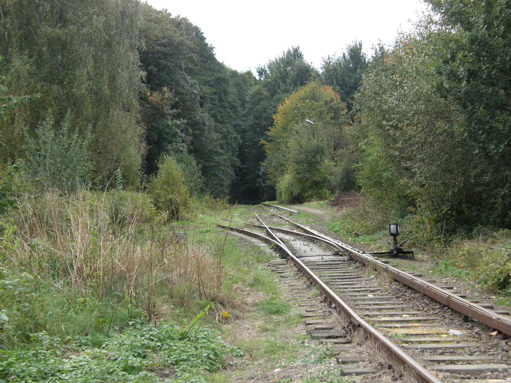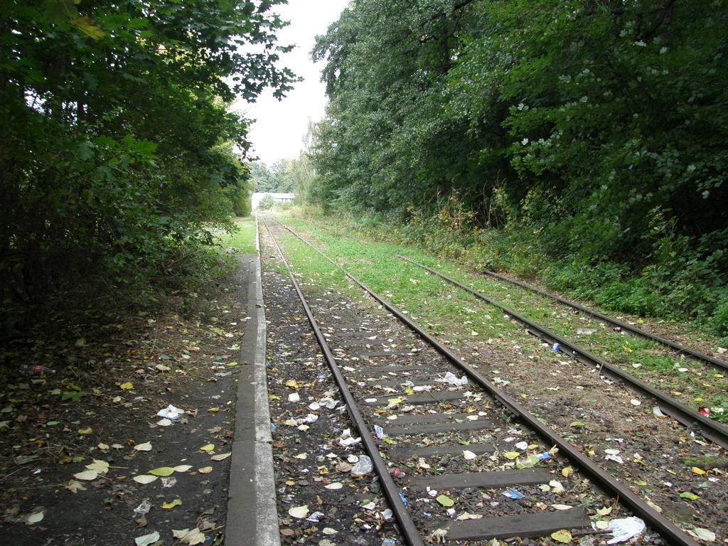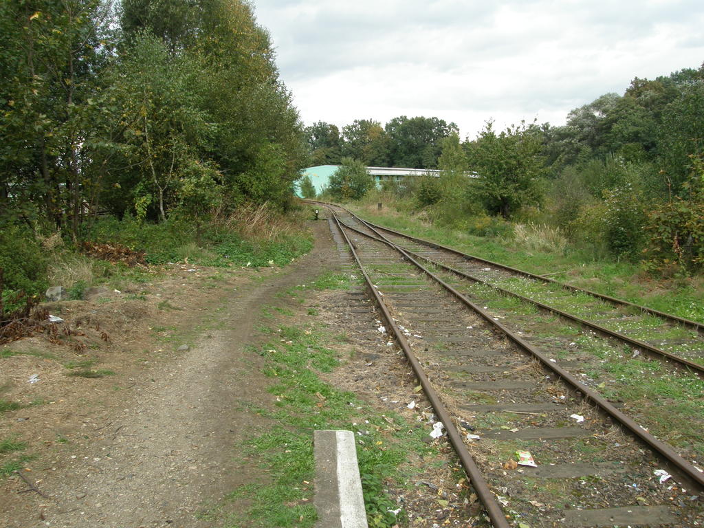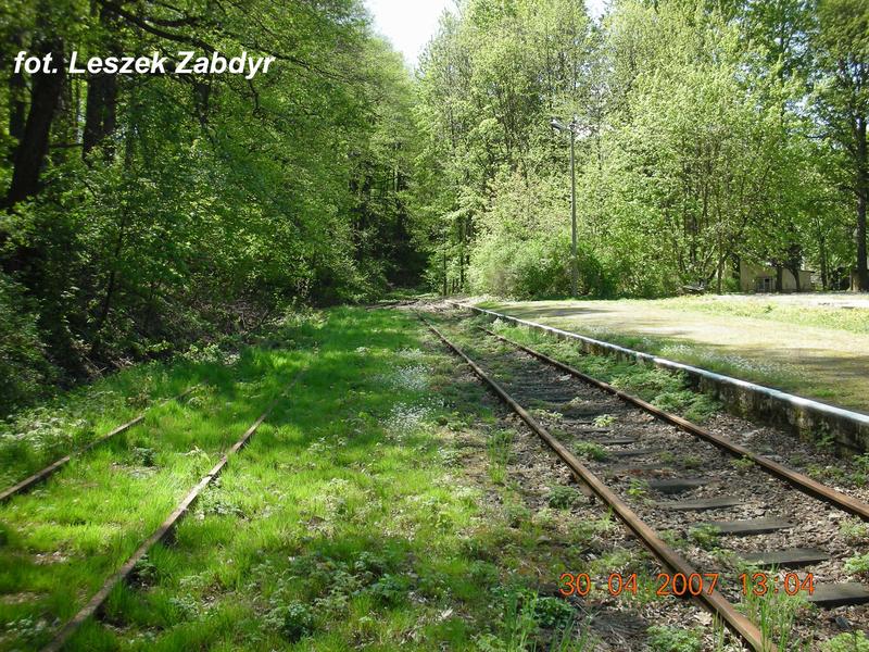 Miejsce po budynku dworcowym. W lewo Nysa, w prawo koniec linii. 8,6 km.