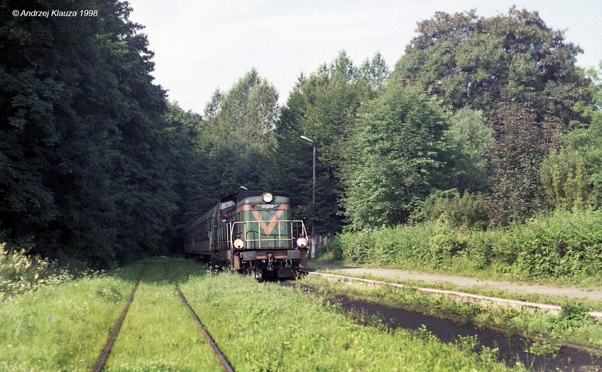 Głuchołazy Zdrój. SP42-267 do Nysy i jeszcze częściowo oliwkowy skład.