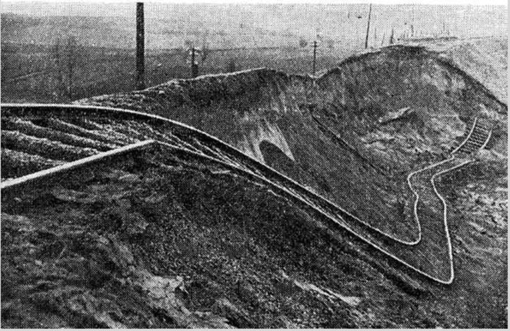 Zniszczenia nasypu na odcinku Grzmiąca - Mieszałki