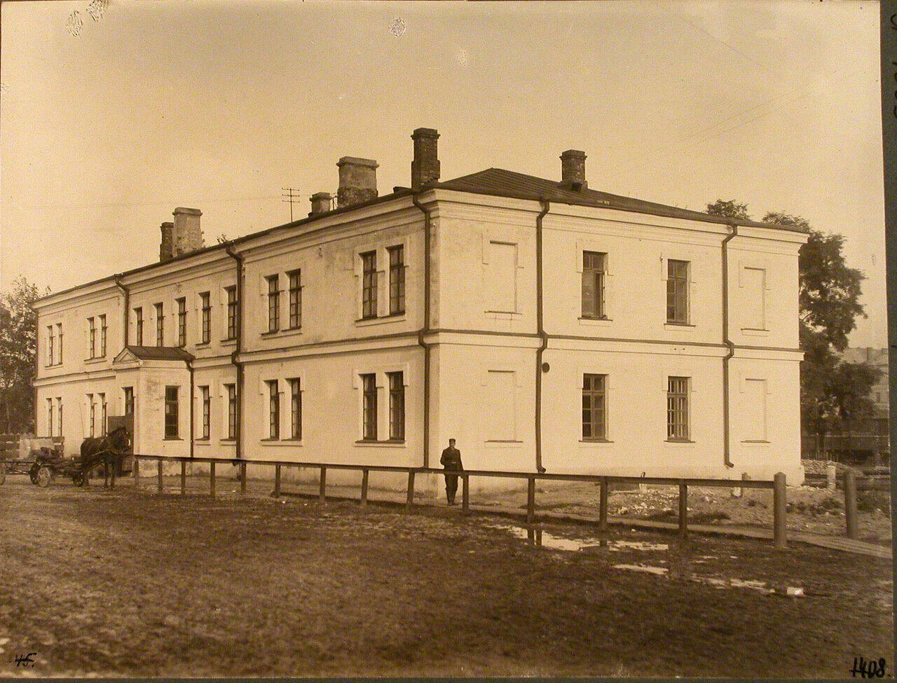 Pocztówka przedstawiająca Dworzec Petersburski od strony podjazdu.