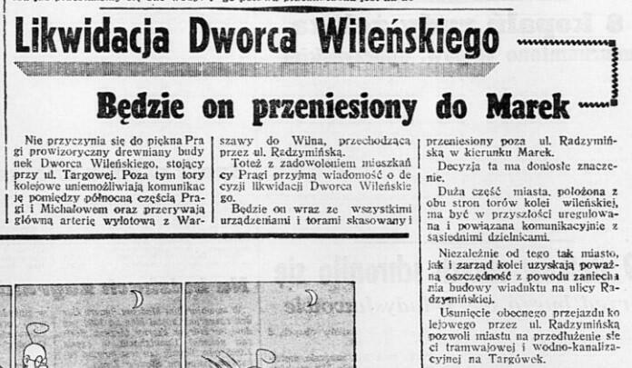 Z granicy "Dzień dobry" z roku 1939 - niezrealizowane plany wyrzucenia Warszawy Wileńskiej za ulicę Radzymińską, czyli zapewne w okolice Warszawy Wileńskiej Marki.