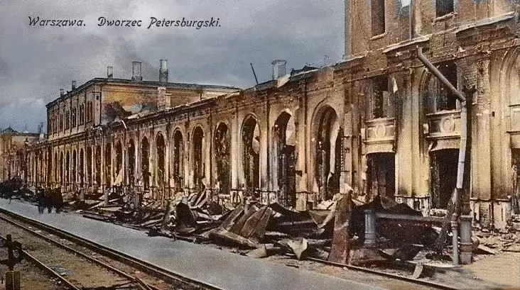 Zniszczony przez wycofujących się Rosjan Dworzec Petersburski.