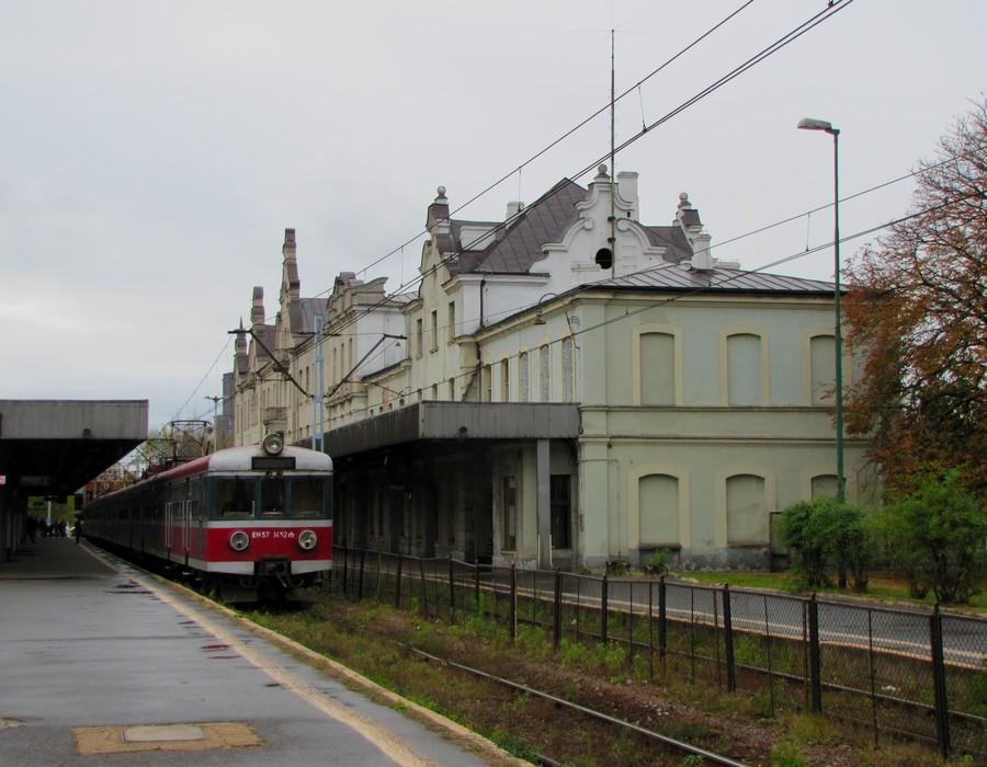 Stacja Łódź Fabryczna jeszcze przed przebudową i jednostka EN57 .