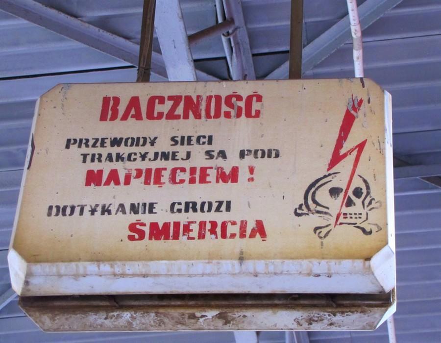 Świetlna tablica ostrzegawcza na peronie stacji, która z pewnością jest historią.