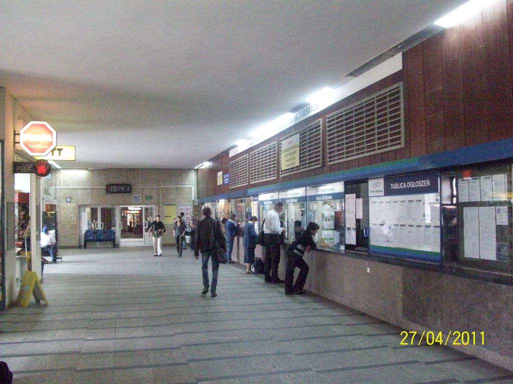 Łódź Fabryczna. Kasy biletowe i poczekalnia w budynku dworcowym.