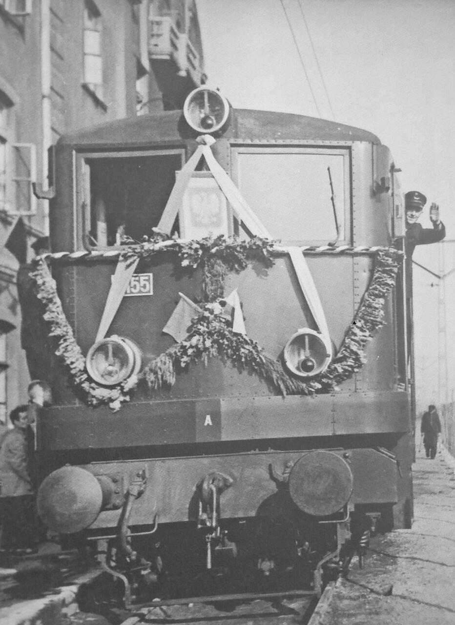Pierwszy elektrowóz (EP03) wjeżdża na stację Łódź Fabryczna.