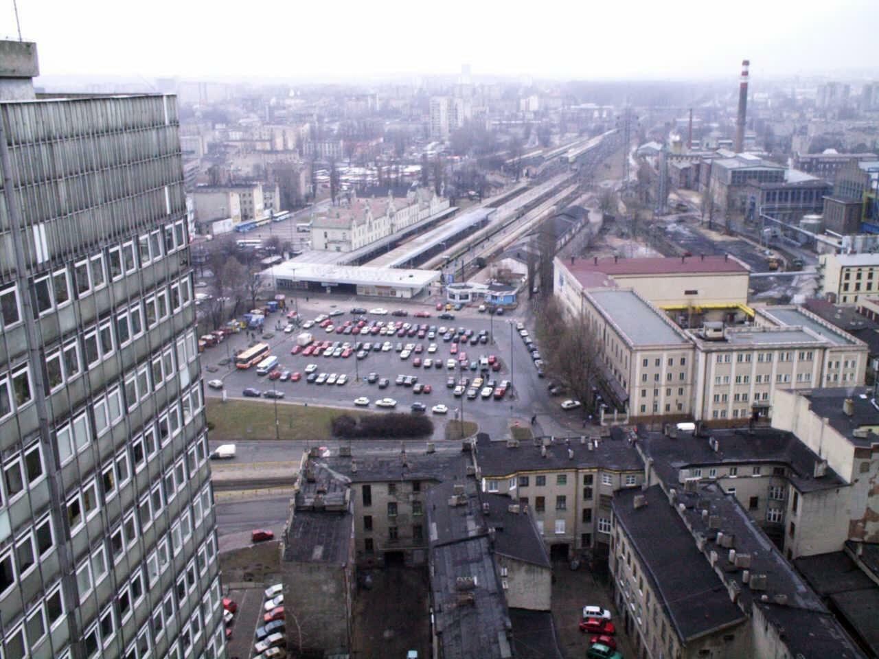 Łódź Fabryczna pod koniec starego wcielenia. Widok poprzez ogromny plac manewrowy autobusów.