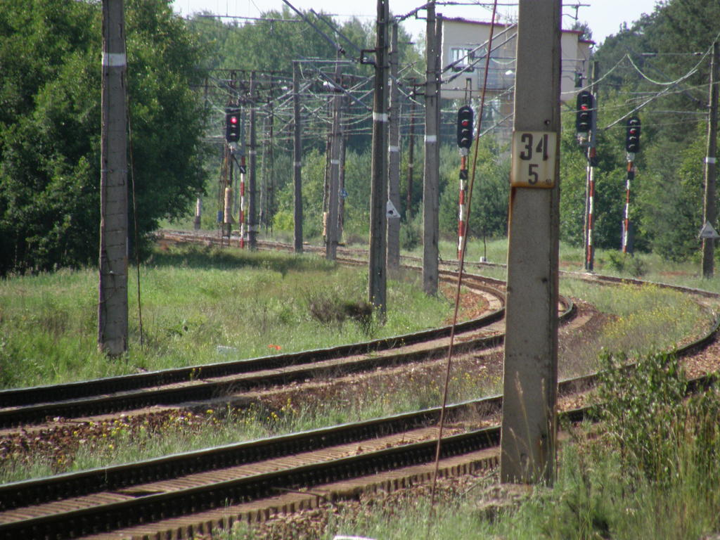 Północno-zachodnia głowica rozjazdowa. W lewo do Łodzi, w prawo do Koluszek. Zdjęcie z okolic nastawni. Widok w kierunku Łodzi. 33,9 km.