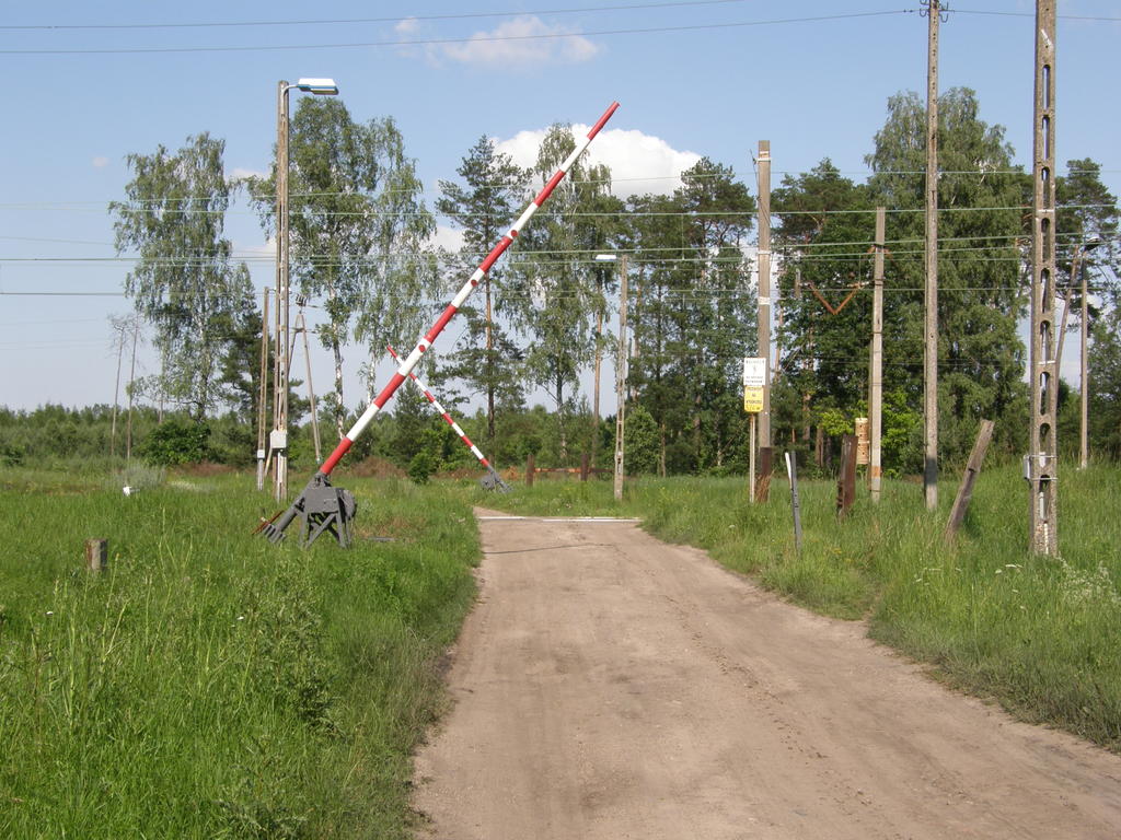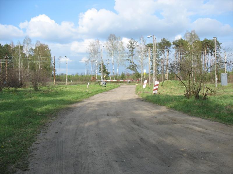 Przejazd kolejowy na drodze leśnej w Mikołajowie.