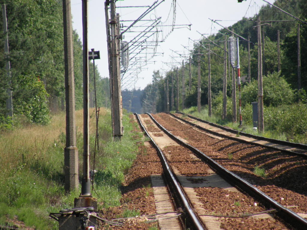 2 tory główne szlakowe i 2 tory główne dodatkowe. Widok w kierunku Tomaszowa Mazowieckiego. 34,7 km.