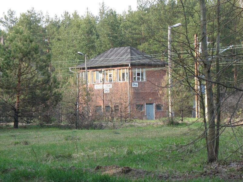 Nastawnia w Mikołajowie widok w stronę Tomaszowa Maz. St. Mikołajów to 2 nastawnie, 2 tory zasadnicze, 2 odstawcze, 2 odgałęzienia do Koluszek i Regien.