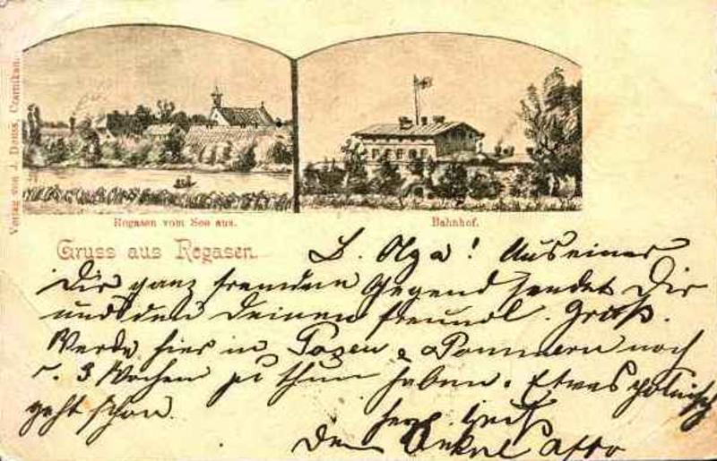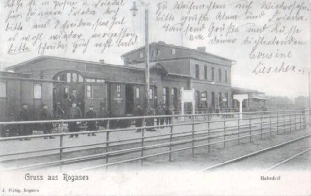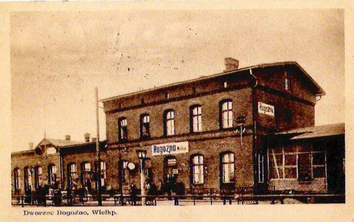 Fotografia przedstawiająca budynek dworca w Rogoźnie w latach 20. XX w.