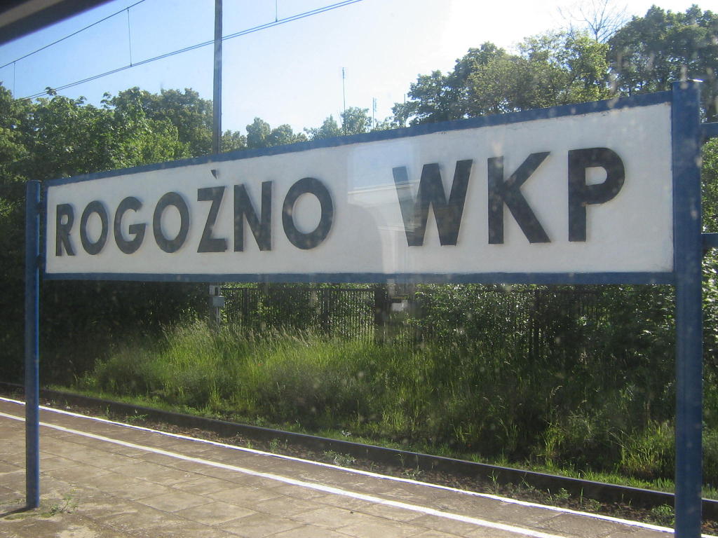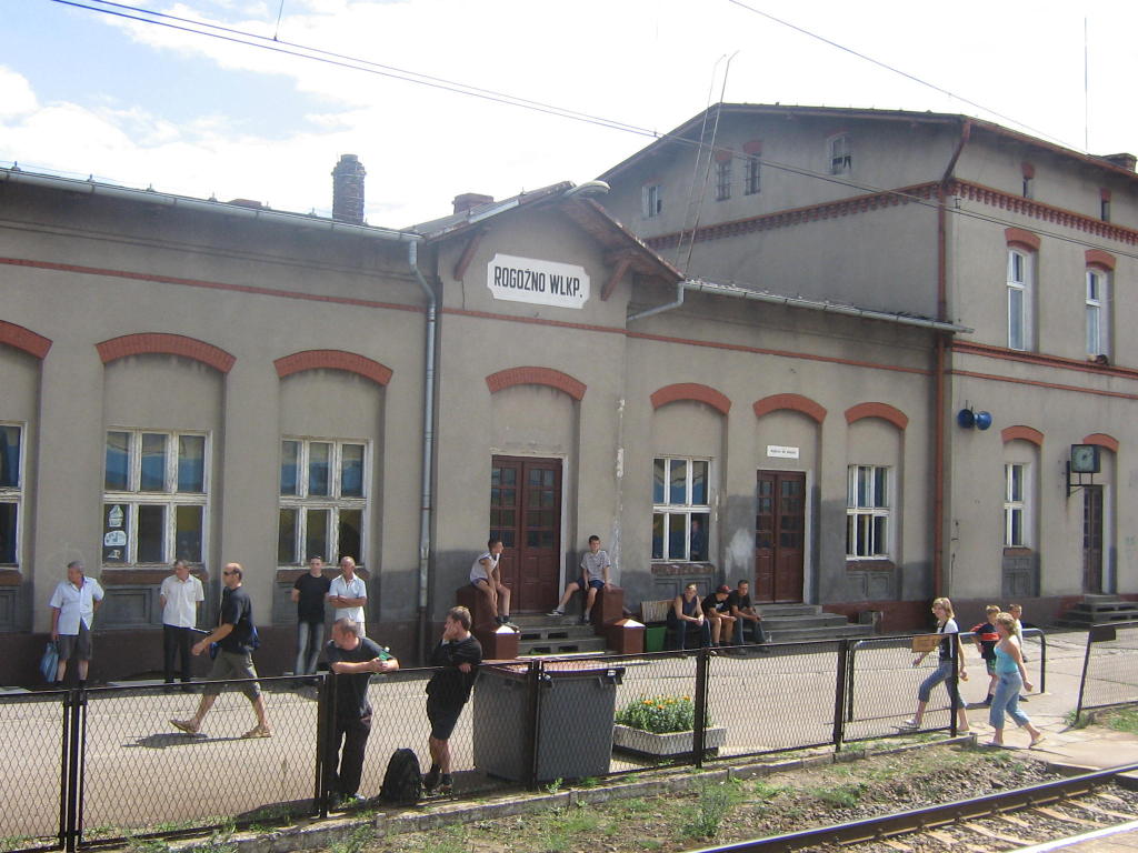 Stacja Rogoźno Wielkopolskie - budynek stacyjny, w lewo - kierunek Chodzież (Piła Główna), Wągrowiec (Inowrocław Rąbinek), w prawo - kierunek Oborniki Wielkopolskie (Poznań POD), Bzowo Goraj (Drawski Młyn).