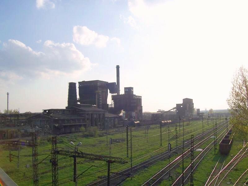 Zachodnia część stacji Bytom Bobrek. Widok na umierającą hutę "Bobrek", obecnie czynne są tu niektóre wydziały. Czynna jest koksownia, a wagony z koksem stojące na stacji są częstym celem ataku band złodziei. Na zdjęciu tego nie widać ale niektóre tory giną pod warstwą resztek usypanego węgla i koksu. Część torów służących niegdyś dla obsługi huty została rozebrana (rozkradziona?). Widok w kierunku Zabrza/Gliwic z wiaduktu drogowego w ciągu ul. Konstytucji (zachód).