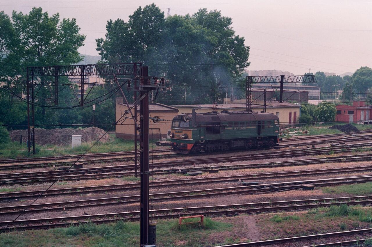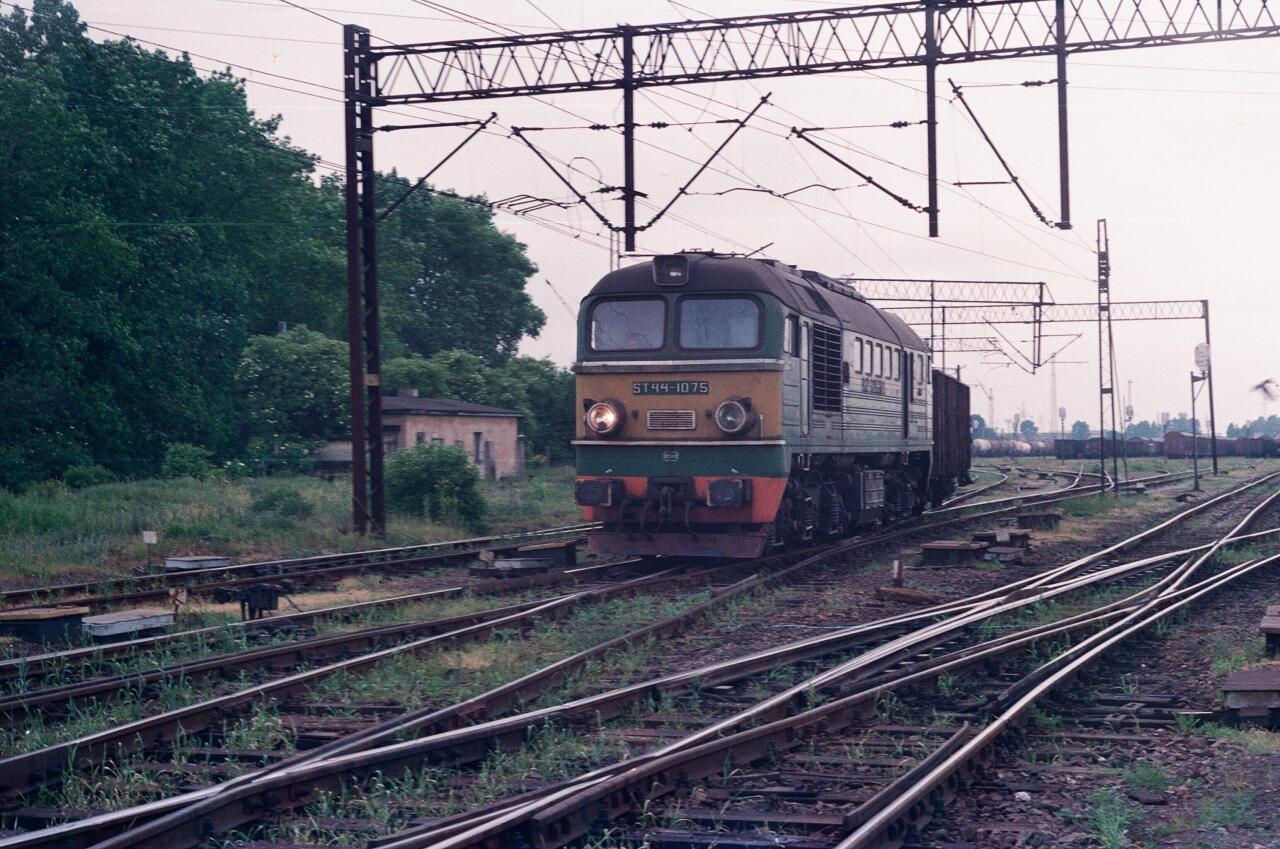 Stacja Gdynia Port GPC - lokomotywa ST44-1075 (MD Gdynia Grabówek) na manewrach stacyjnych. Na dalszym planie grupa torów kierunkowych (2-30), na których formowano pociągi (z drugiej strony w/w grupy torów istniała górka rozrządowa, obsługiwana z nastawni wykonawczej Gdynia Port GPD). Po odprawie technicznej i wykonaniu szczegółowej próby hamulca składy pociągów wyciągano lokomotywami manewrowymi na posterunek (nastawnia dysponująca) Gdynia Port GPW, gdzie po dojechaniu lokomotywy pociągowej, uproszczonej próbie hamulca pociąg towarowy wyruszał w trasę. Widok w kierunku stacji Gdynia Port GPF.