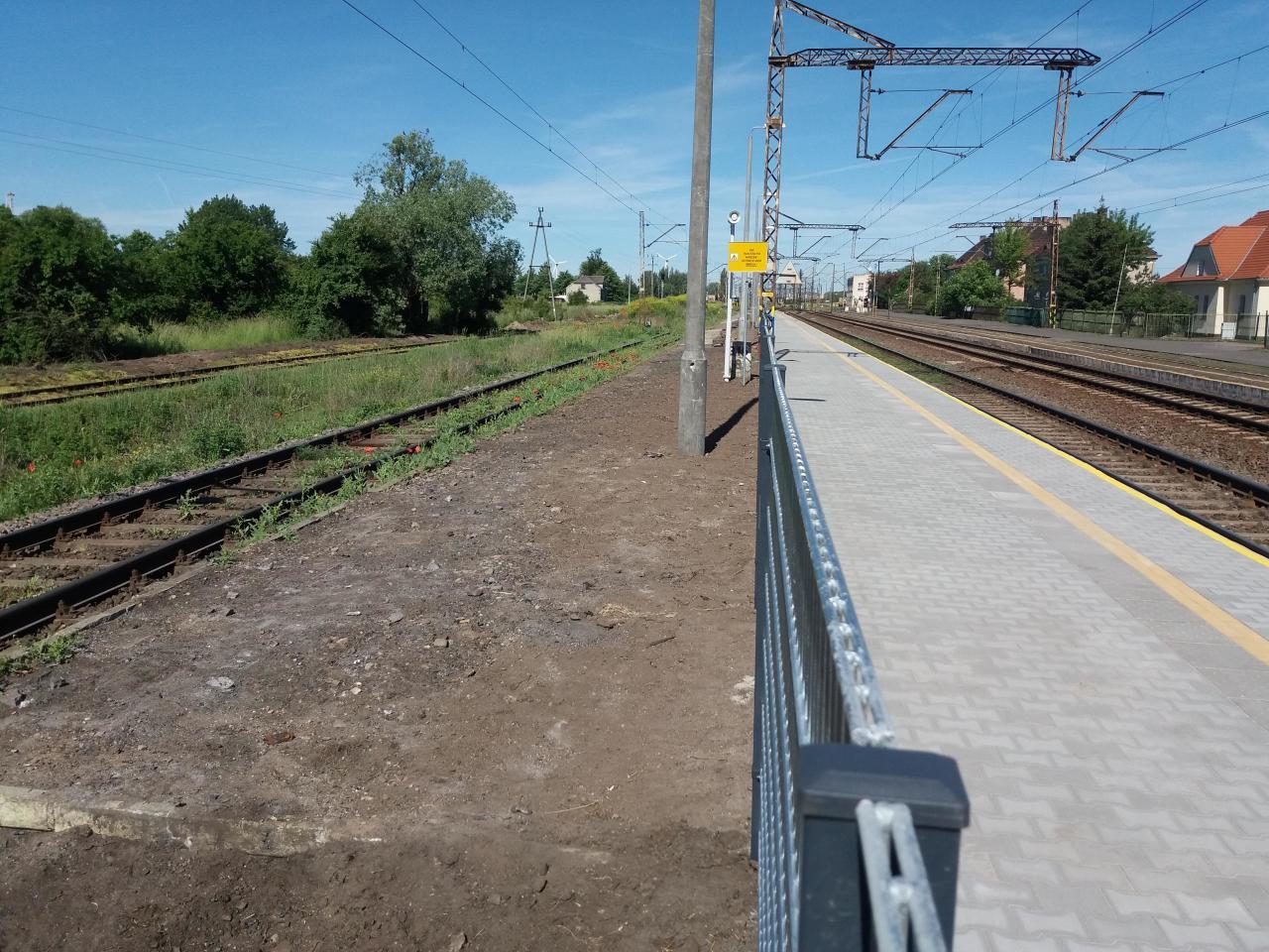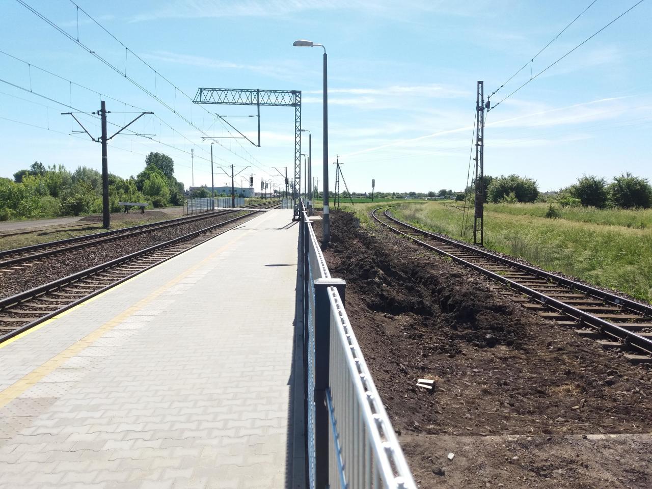 Widok z peronu 2 kierunek do Zduńskiej Woli Karsz. (peron 1 nieczynny a za płotem peronu 2 nieczynna krawędź peronowa dla toru do Kruszwicy);