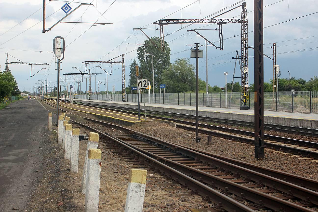 Widok z peronu 2 w kierunku Dziarnowa/Inowrocławia (peron 1 nieczynny a za płotem peronu 2 nieczynna krawędź peronowa dla toru do Kruszwicy);