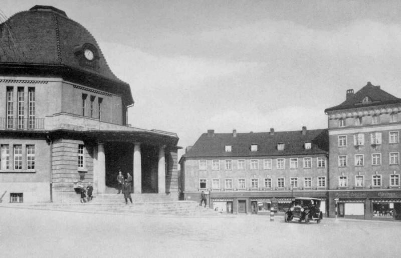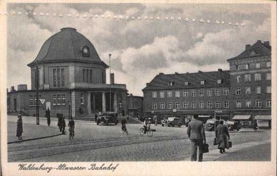 Wałbrzych Miasto - widok na budynek dworca od strony zachodniej przed budową peronu wyspowego. Ze zbiorów Adama Pacześniaka.