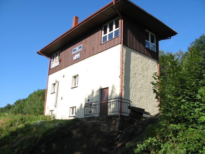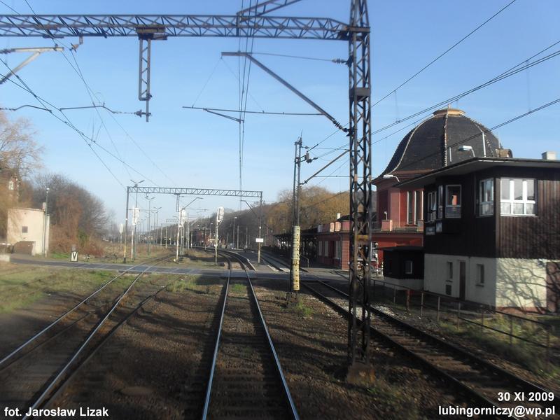 Nastawnia wykonawcza WM1 widziana z pociągu pośpiesznego "Karkonosze".