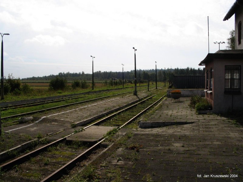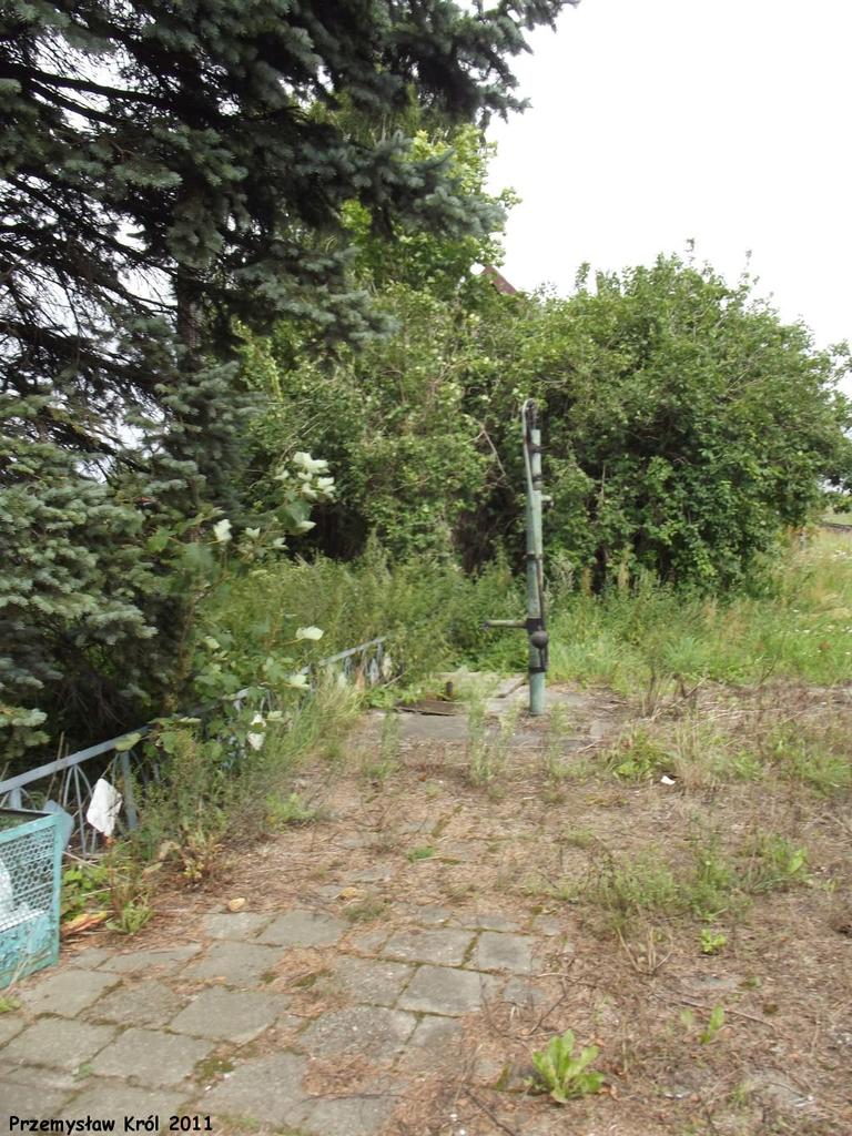 Nieczynna nastawnia wykonawcza od strony wjazdu z Lęborka (w lewo). Widok w kierunku zachodnim; w prawo perony.