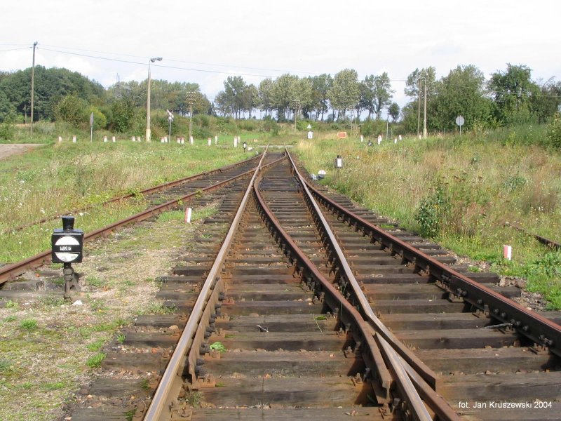 Granica przetaczania. Tor lewy do Wrześci/Łeby, tor prawy do rybna/Wejherowa. Kierunek północny.