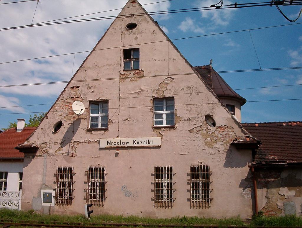 Dworzec Wrocław Kuzniki i Bahnhof Breslau-Schmiedefeld od strony torów.