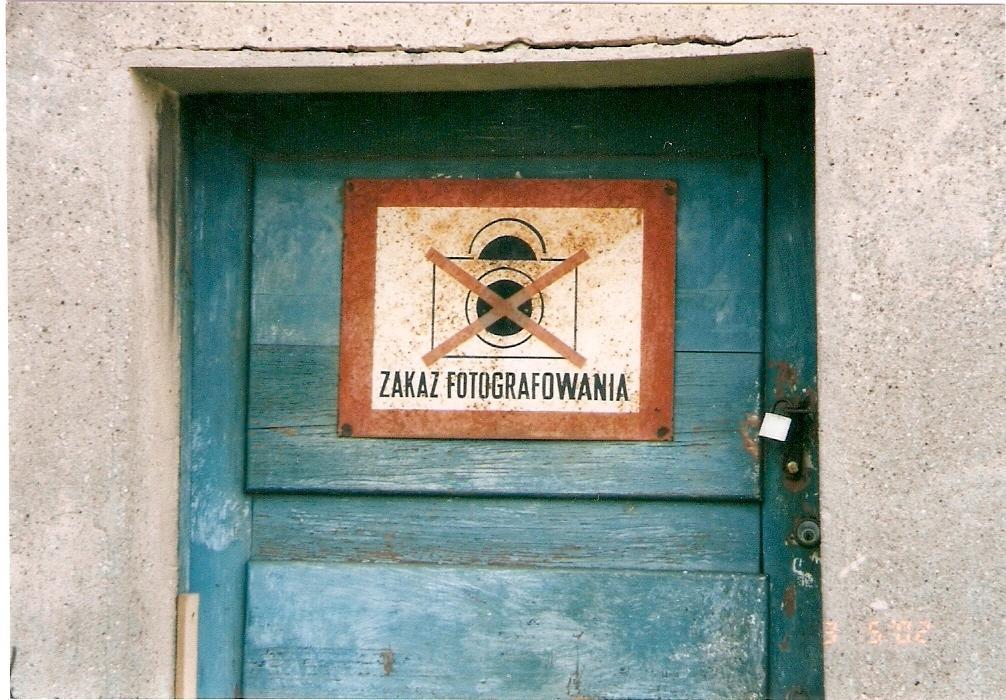 Świnoujście Port. Groźny napis na drzwiach do wieży wodnej.