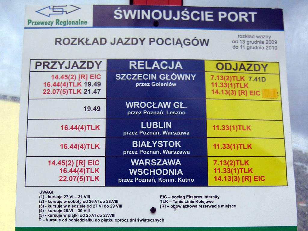 Przystanek PKP Świnoujście Port. Rozkład jazdy na peronie.