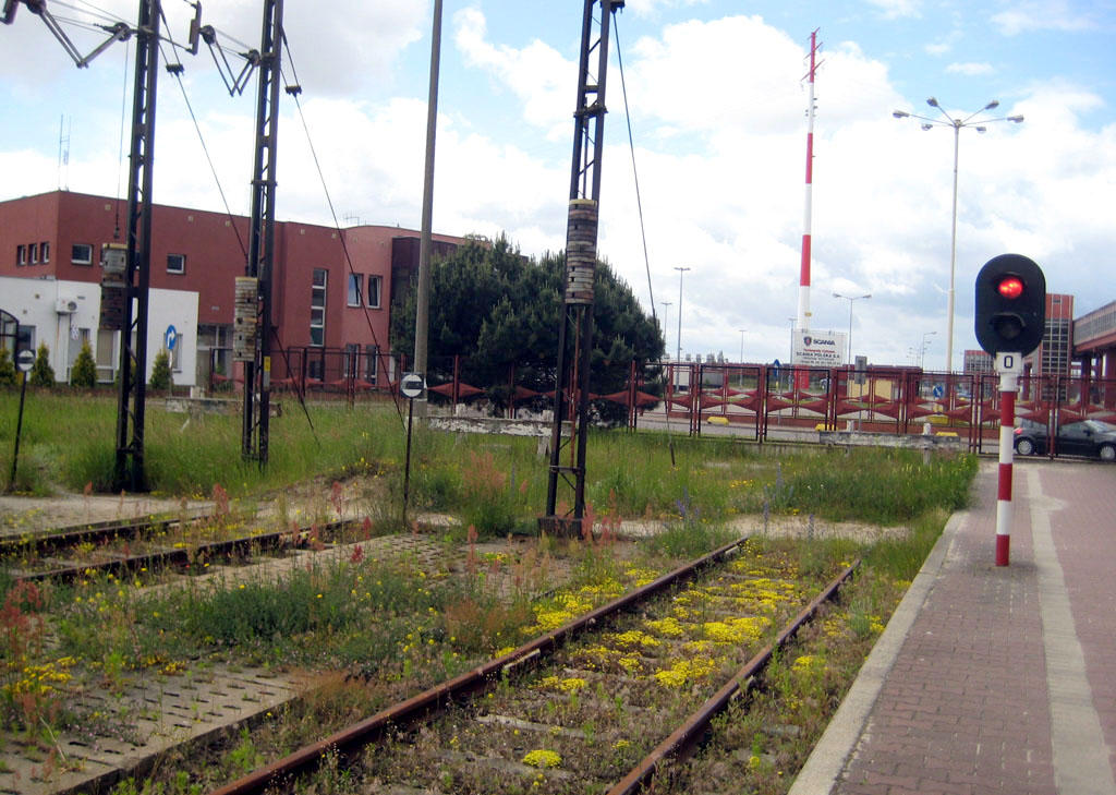 Świnoujście Port i koniec torów.a po prawej stronie Terminal promowy w Świnoujściu.