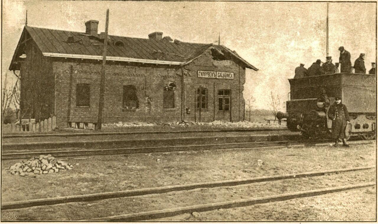 Galkowek stacja. Droga Żelazna Fabryczno - Łódzka zbudowana pod zaborem rosyjskim.Stacja Gałkówek z budynkiem dworca pochodzącym z ok.1900 roku (dwujęzyczny napis z nazwą) - zapewne tuz po zakończeniu Bitwy Łódzkiej, która miale miejsce w 3-ciej dekadzie listopada 1914 roku.Sam budynek ledwie draśnięty, a w lesie na górce - 1.5 km na południowy wschód wielka rzez i 900 żołnierzy obu stron, pochowanych obok siebie.