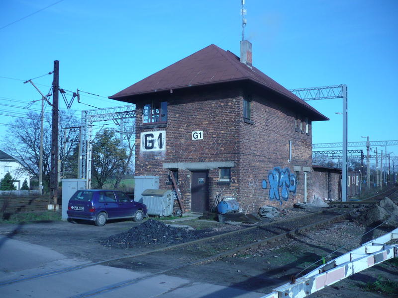 Nastawnia G1. Wygląd nastawni przed wyburzeniem. - remont trasy Łódź - Warszawa.