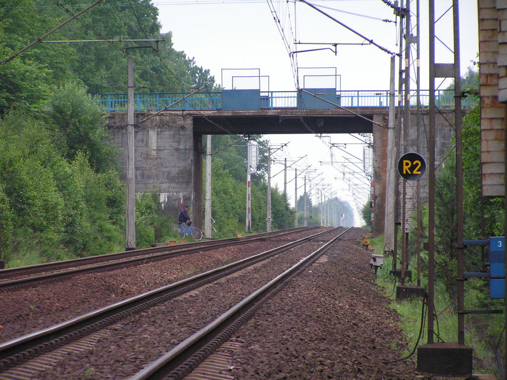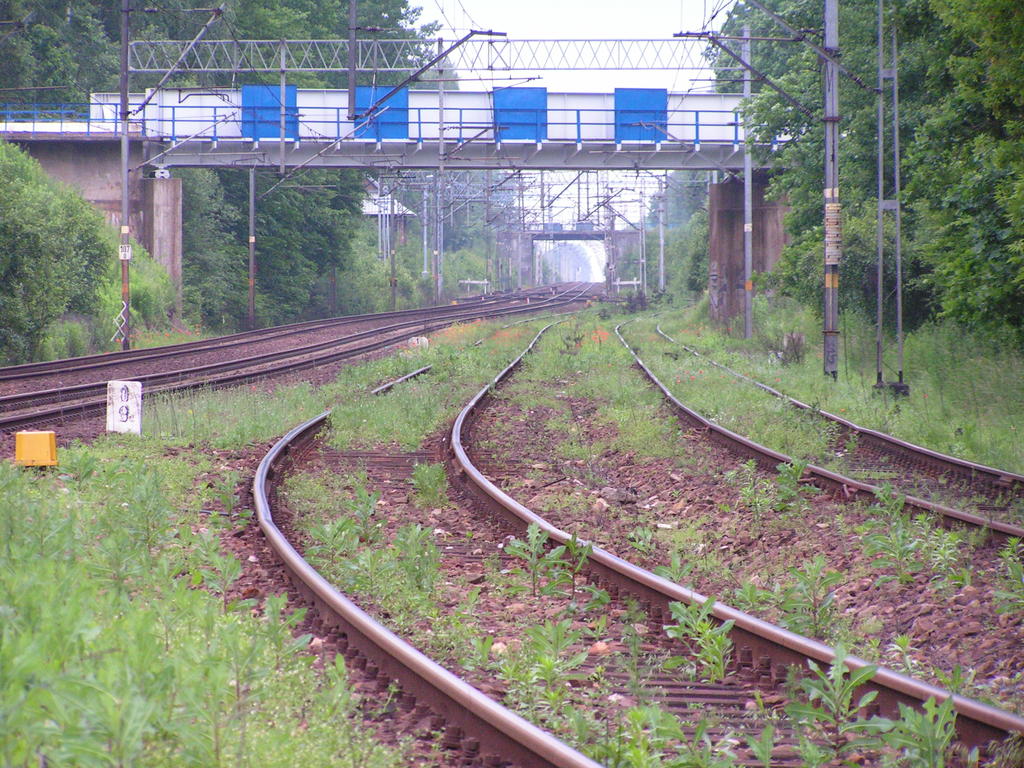 Wiadukt na linii Łódź Kaliska - Tomaszów Mazowiecki - Dębica nad linią Warszawa Centralna - Katowice. W prawo Tomaszów Mazowiecki, w lewo Łódź. 29,8/ 107,7 km.
