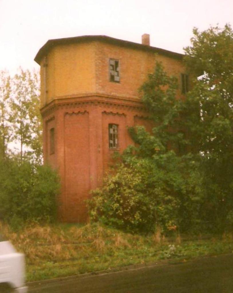 Chodzież. Kolejowa wieża wodna, widok z ul. Fabrycznej.