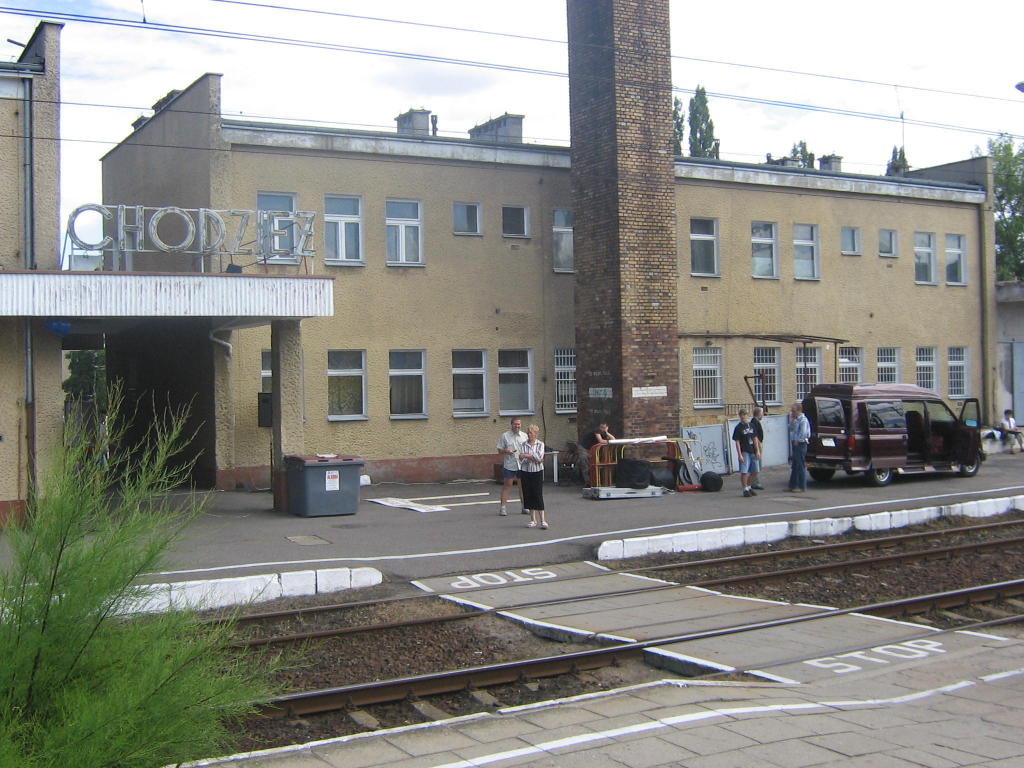 Perony i budynek stacyjny Chodzieży. Widok od strony Rogoźna Wielkopolskiego/Poznania.