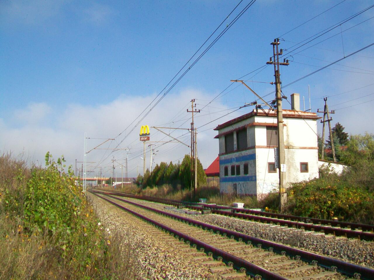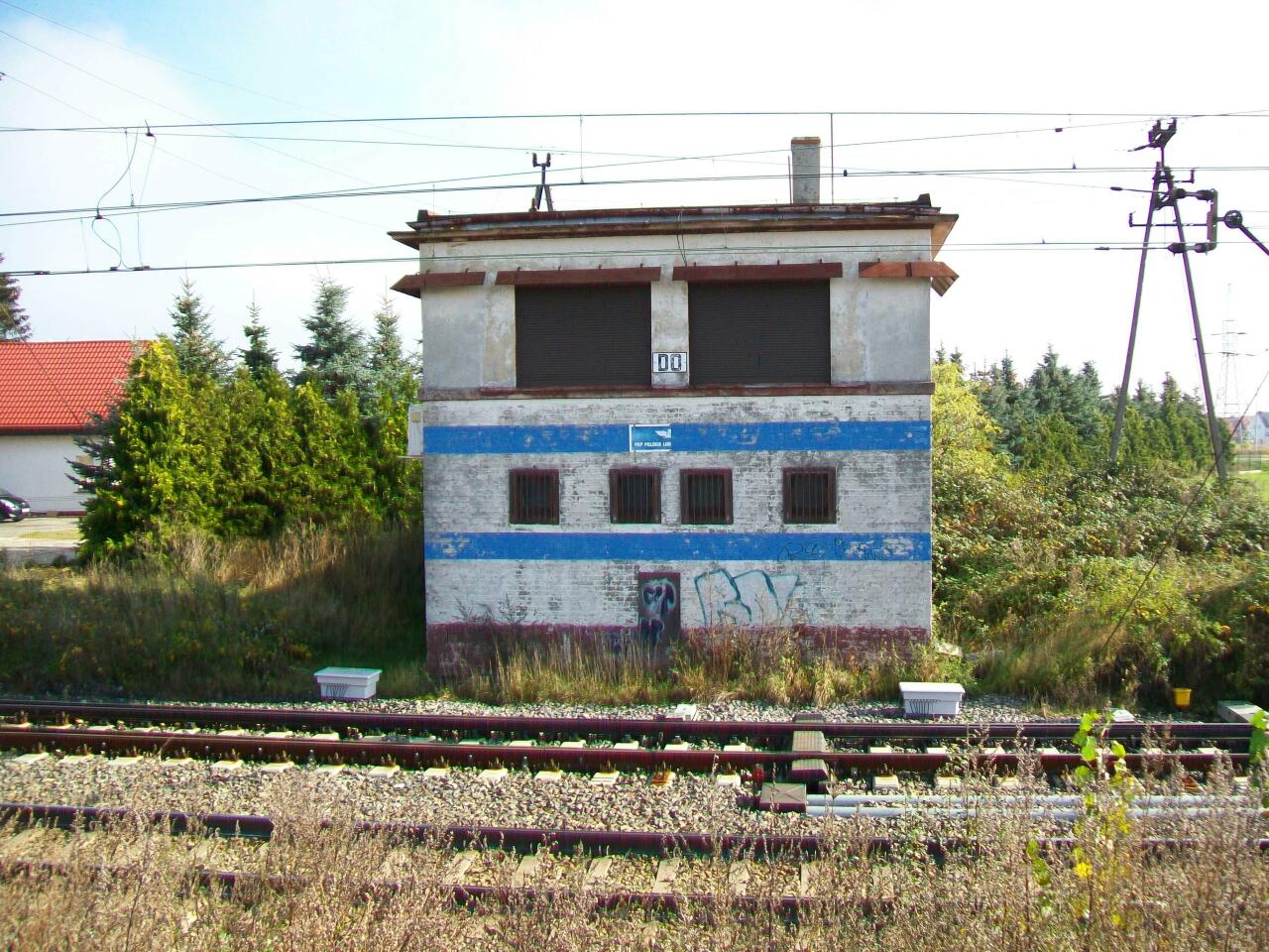 Nieczynna nastawnia dysponująca na wjazdach z Oleśnicy i Wrocławia (z prawej). Widok w kierunku wschodnim; w lewo perony.