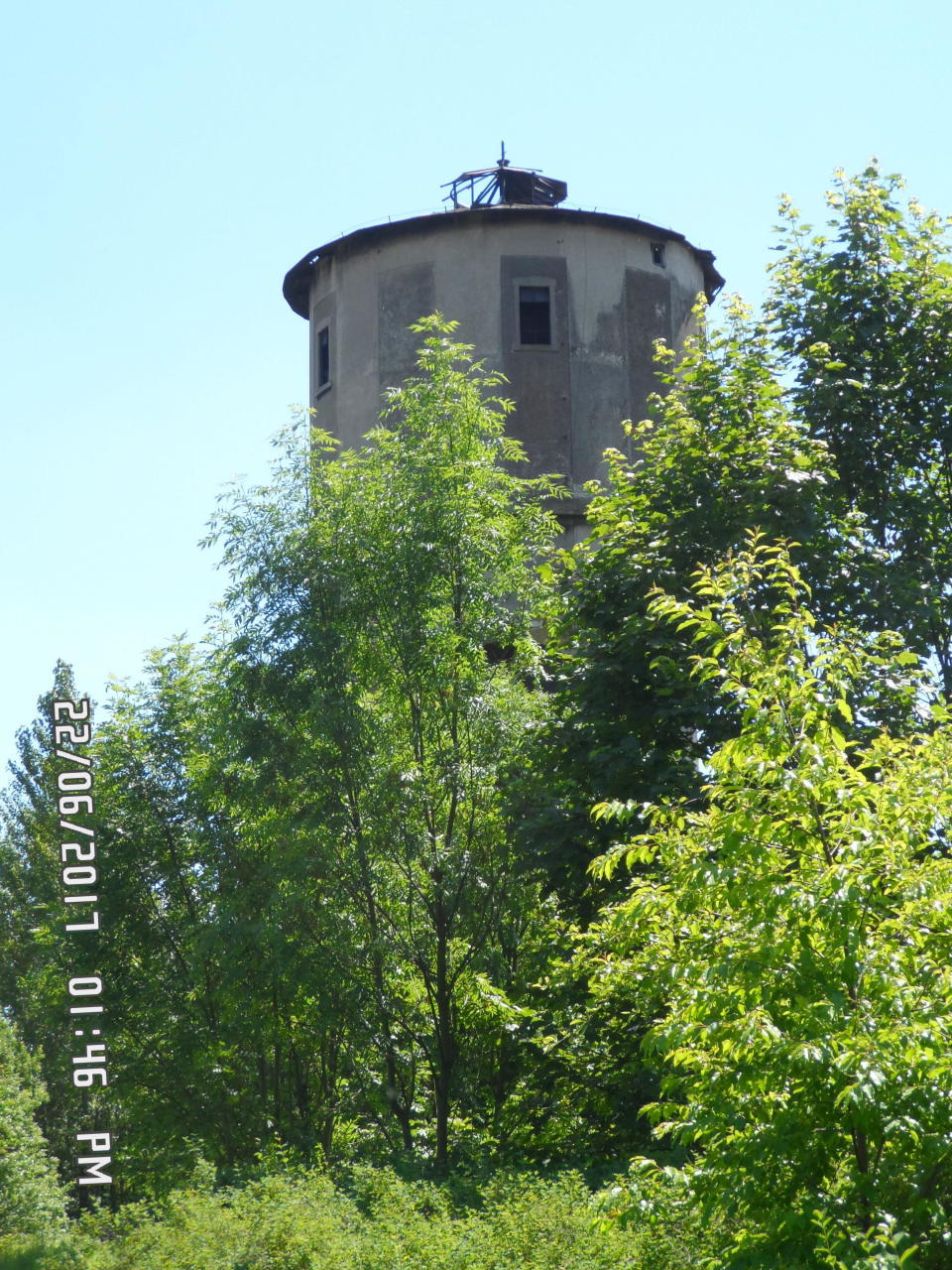 Łódź Kaliska Towarowa. Bunkier w sąsiedztwie wieży wodnej.