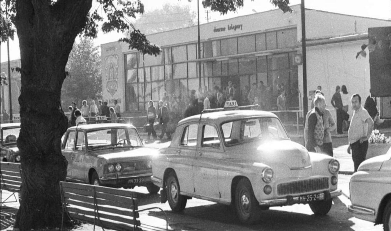 Dworzec od strony ulicy oraz postój taxi w latach 70. XX w.