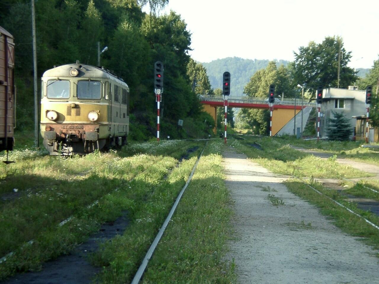 Zagórz, km 1,7. SM42 zjeżdża do lokomotywowni. Widok w kierunku Łupkowa.