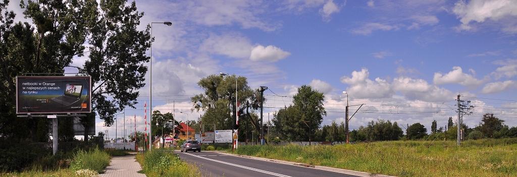Widok ogólny na przejazd kolejowy.
