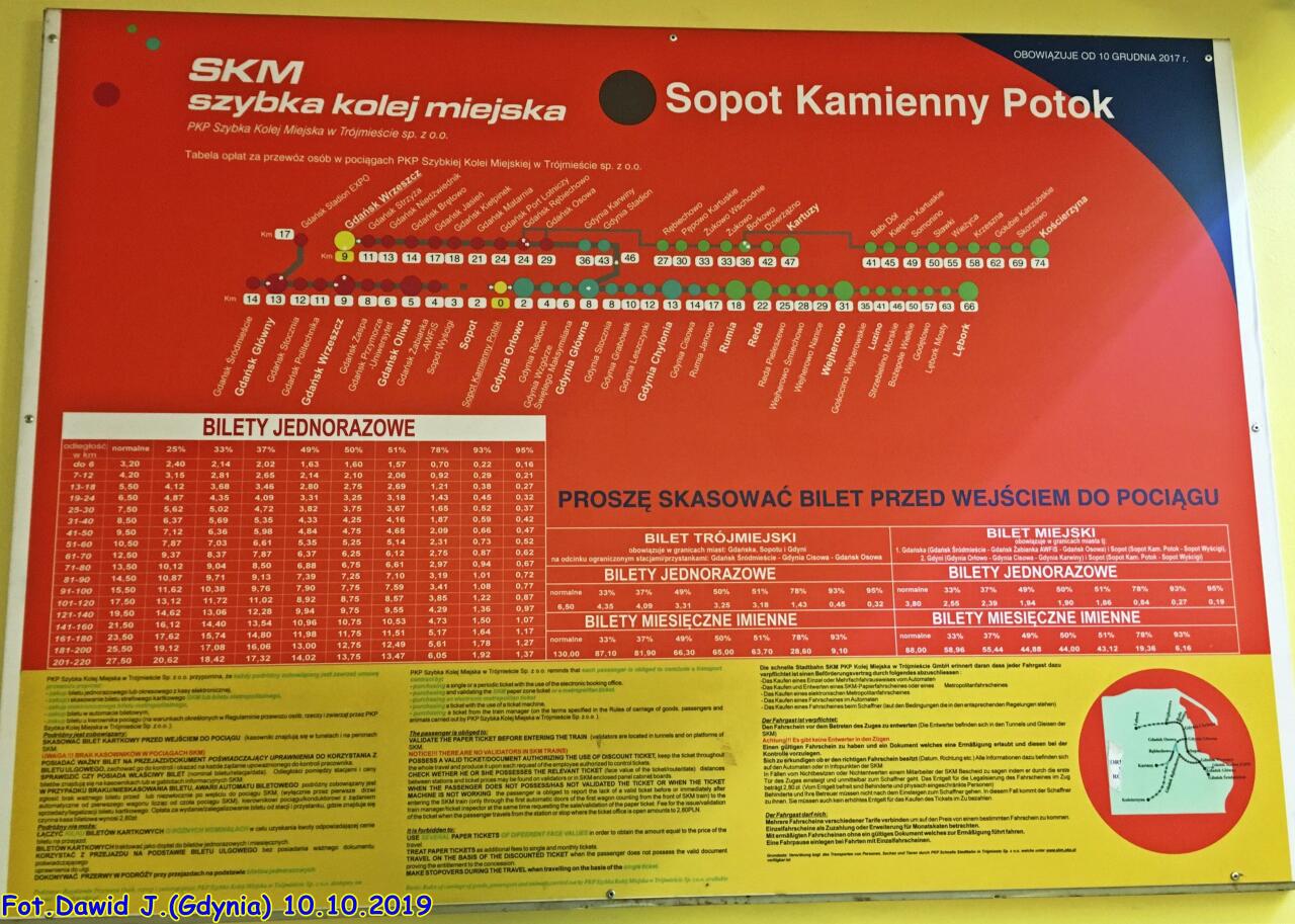 Tablica z informacjami od PKP SKM.